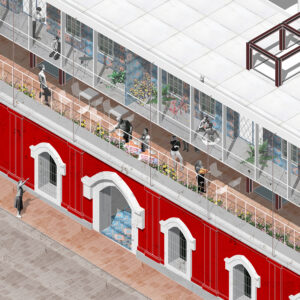 This housing development model puts formerly isolated public and private partners into the same space, and we further used our design to explore what new social relationships can emerge out of this spatial arrangement and what kind of architectural quality the interactions will imply. Although the project is first and foremost concerned with housing, we believe that open space is crucial for the social wellbeing and spatial pleasure of housing development. Therefore, in the Mayordomo house, we investigated the creative potential of courtyards, using architecture as a lens to imagine what it could mean for both the tourists and the local residents to use the courtyard and how traditional cultures will meet new businesses in the courtyard.
