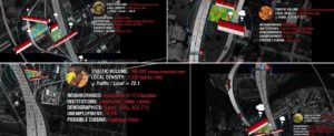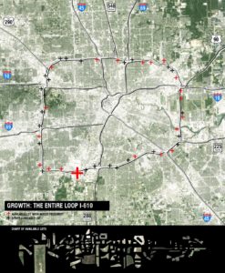 I chose Houston as my testing ground and did my fieldwork from December 2013 to January 2014. I targeted the commuter population on Interstate Highway 610, the 38-mile “Loop” that cuts across Houston with its magnificent 12 concrete lanes. Along the Loop I surveyed over 110 unbuilt land parcels abutting the highway – they were situated in neighborhoods of various economic, physical, and sociocultural characteristics. These lands provide readily available opportunities to establish new food infrastructures serving the countless drivers on the Loop.